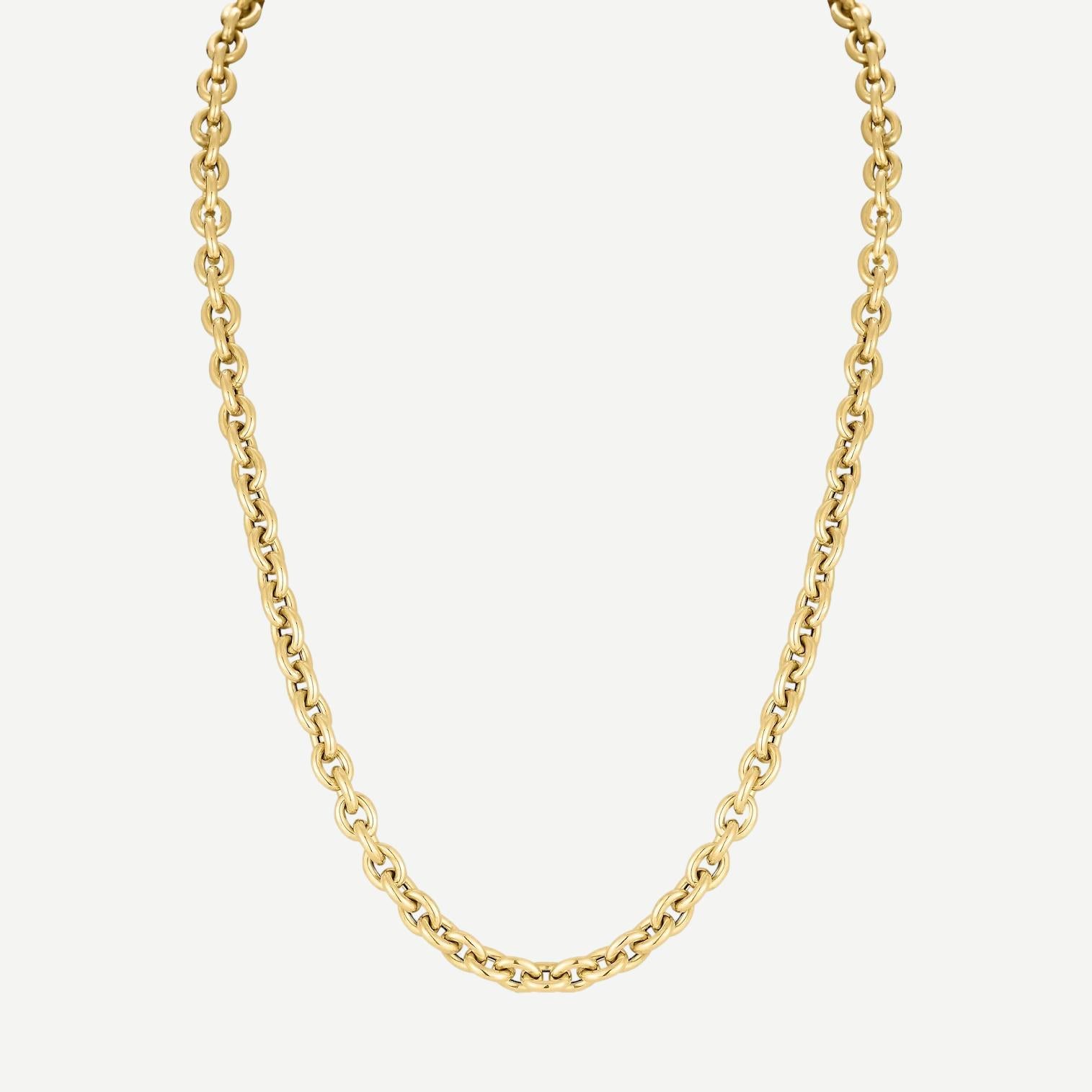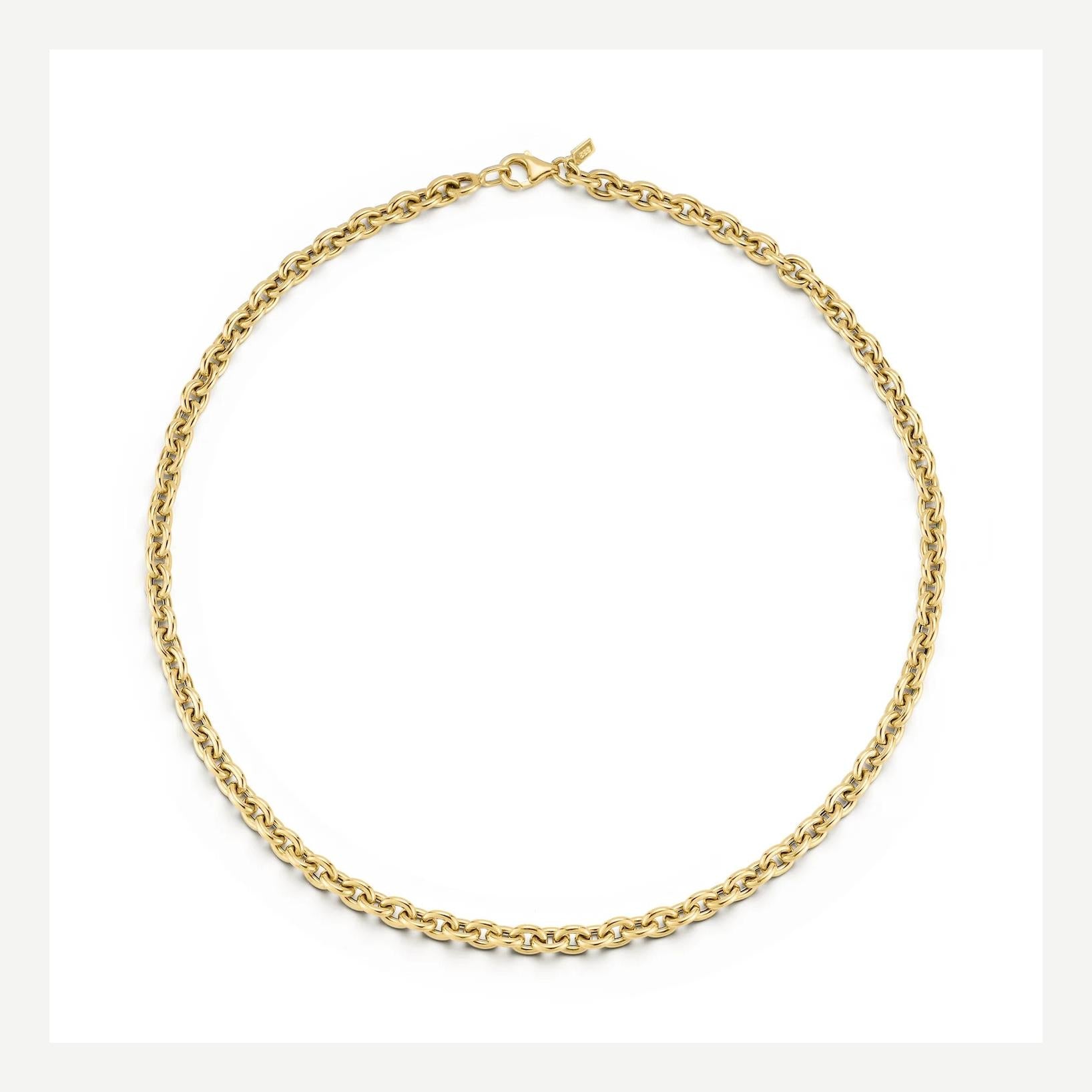 The Sienna Chain Necklace is a bold take on an oval link chain. Featuring circular interlocking links made from hollow 14k gold, this necklace elevates your look without weighing you down.