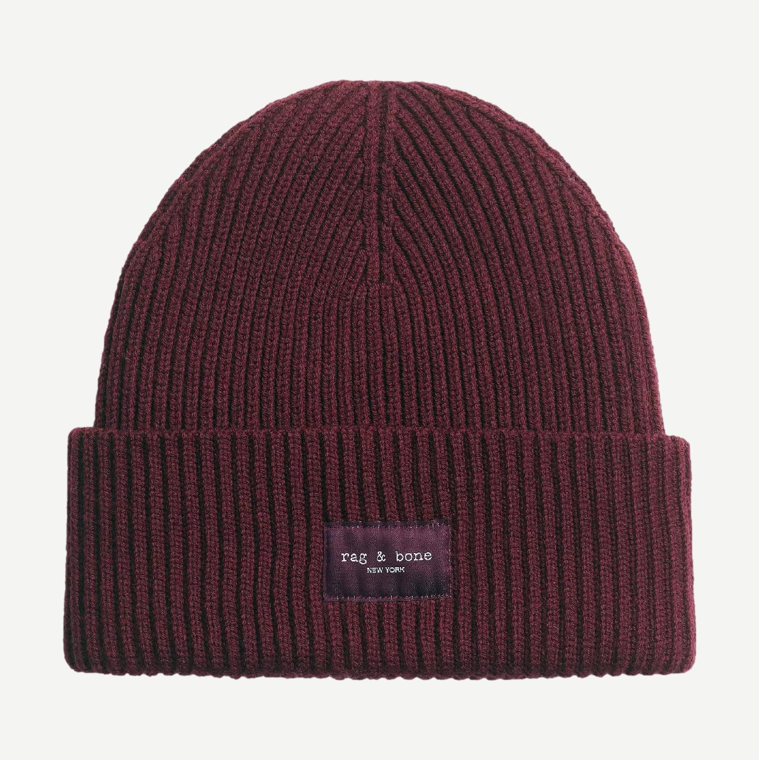 A cold-weather staple. Knit from a soft, extra-fine merino wool blend, this beanie hat is designed for a snug fit with a folded brim featuring a logo patch at the center.