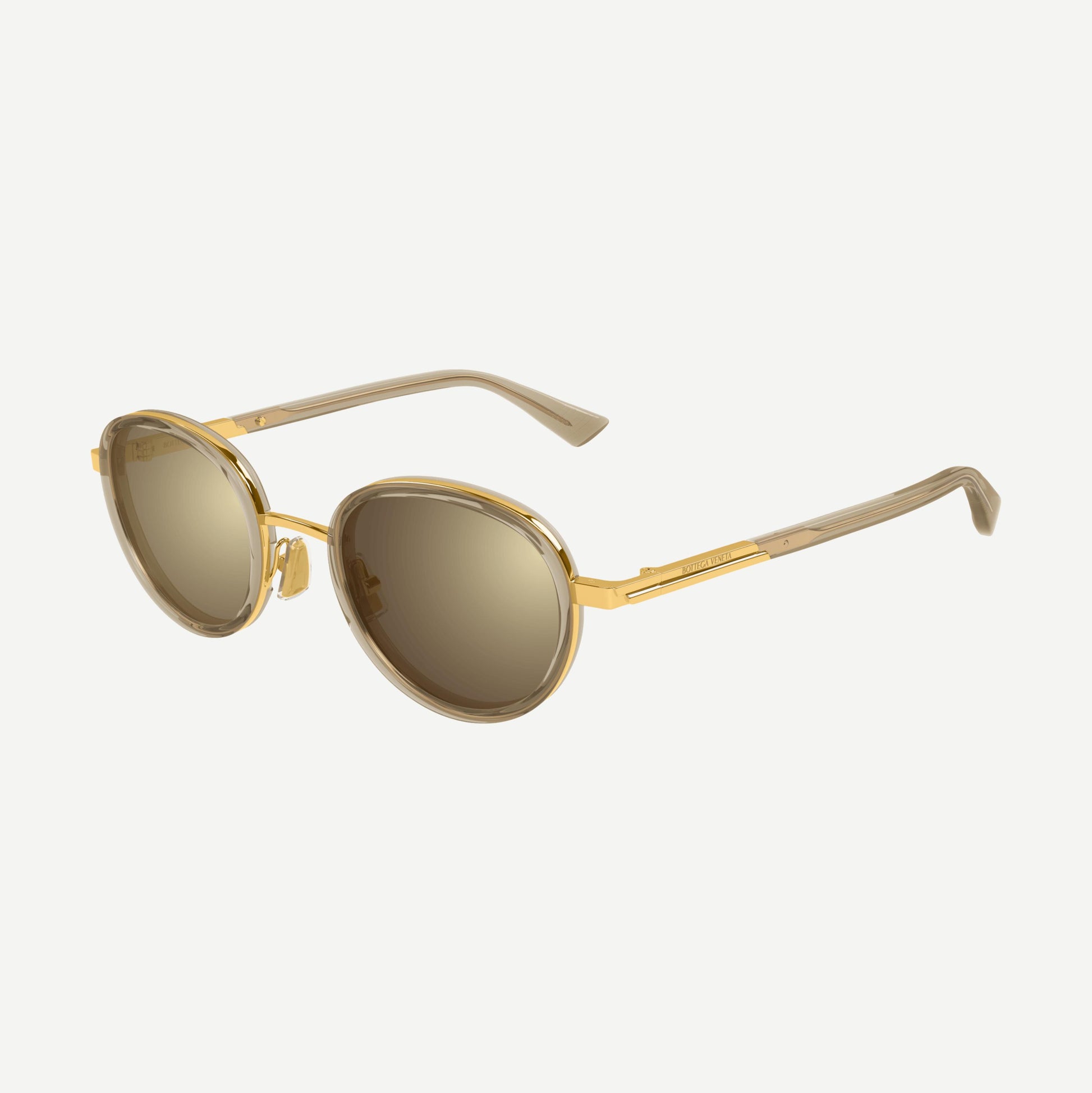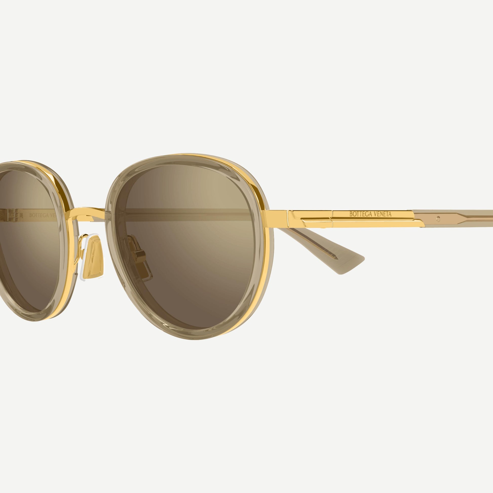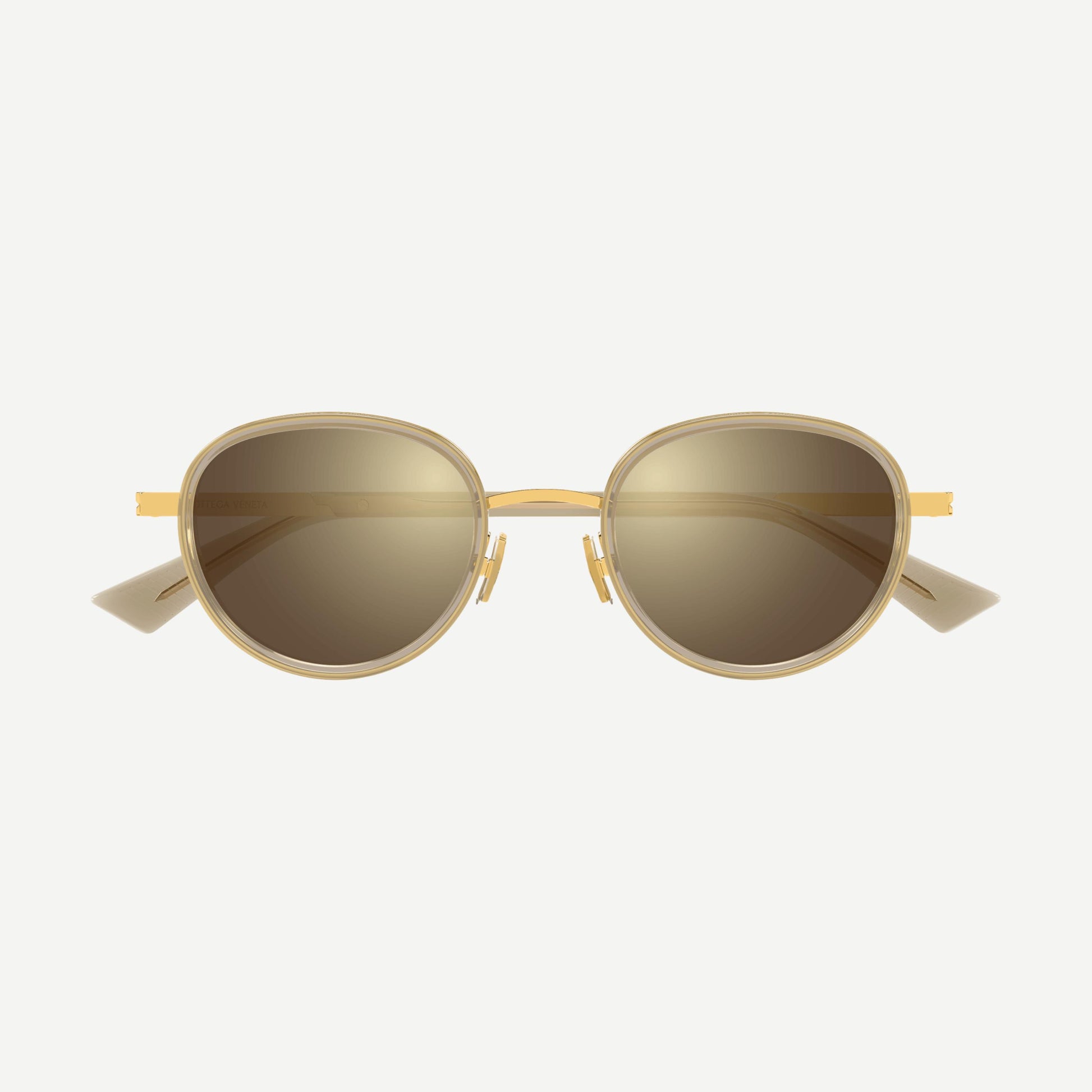 Oval panthos. Acetate end pieces layered over metal ends for a precious combination construction.