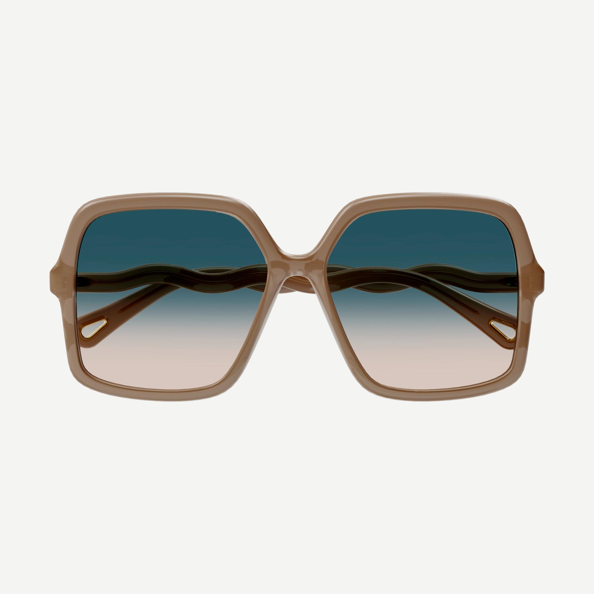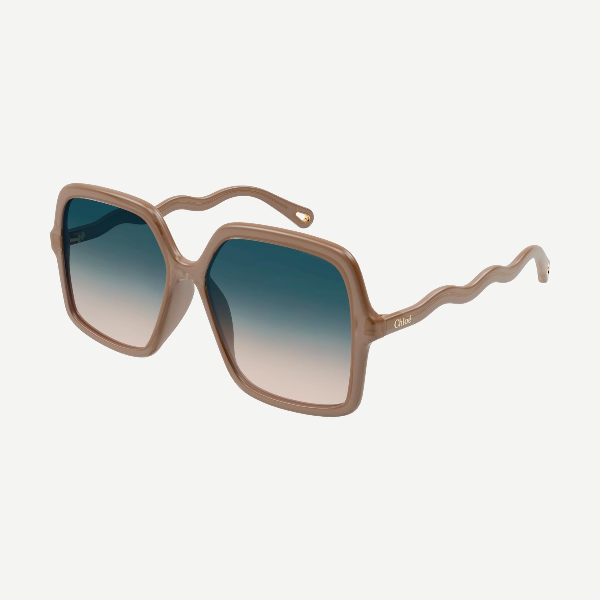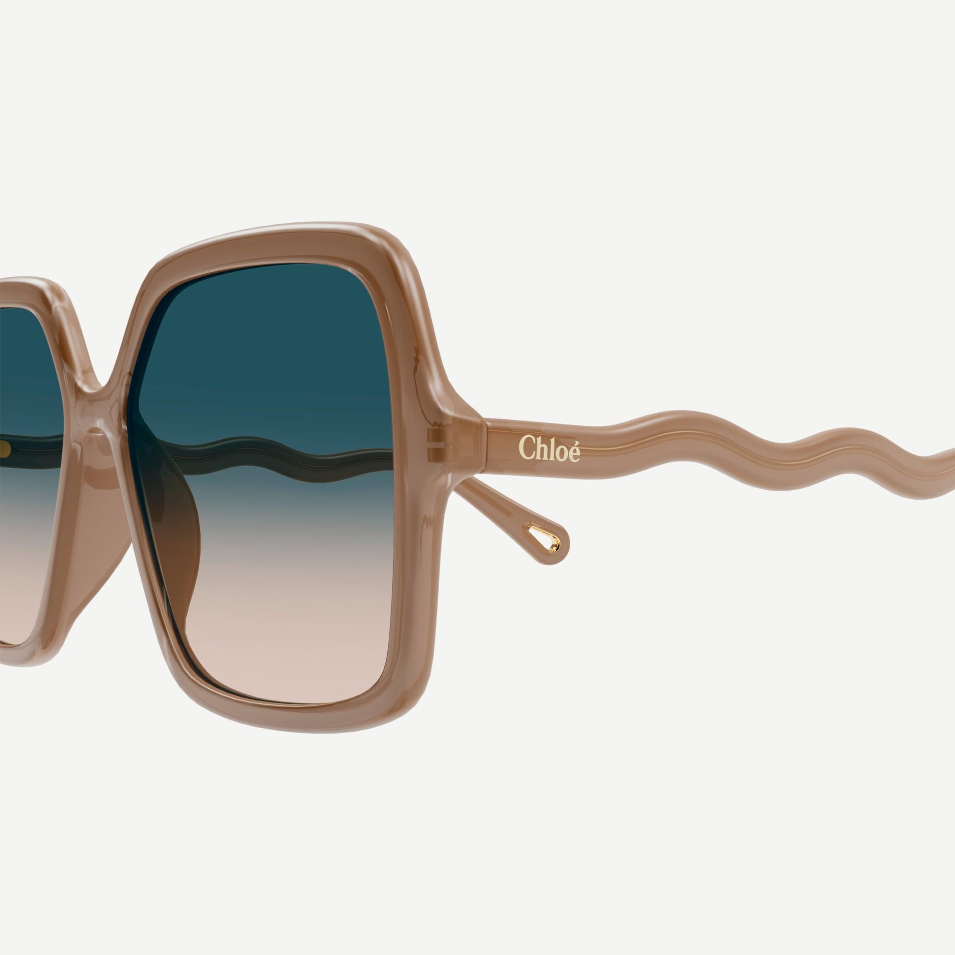 Vintage oversized squared shape in a bio-based acetate material featuring double gradient lenses. Waved temple inspired by the iconic wave code of Chloé's accessories. Iconic teardrop cutout on the temple tip.