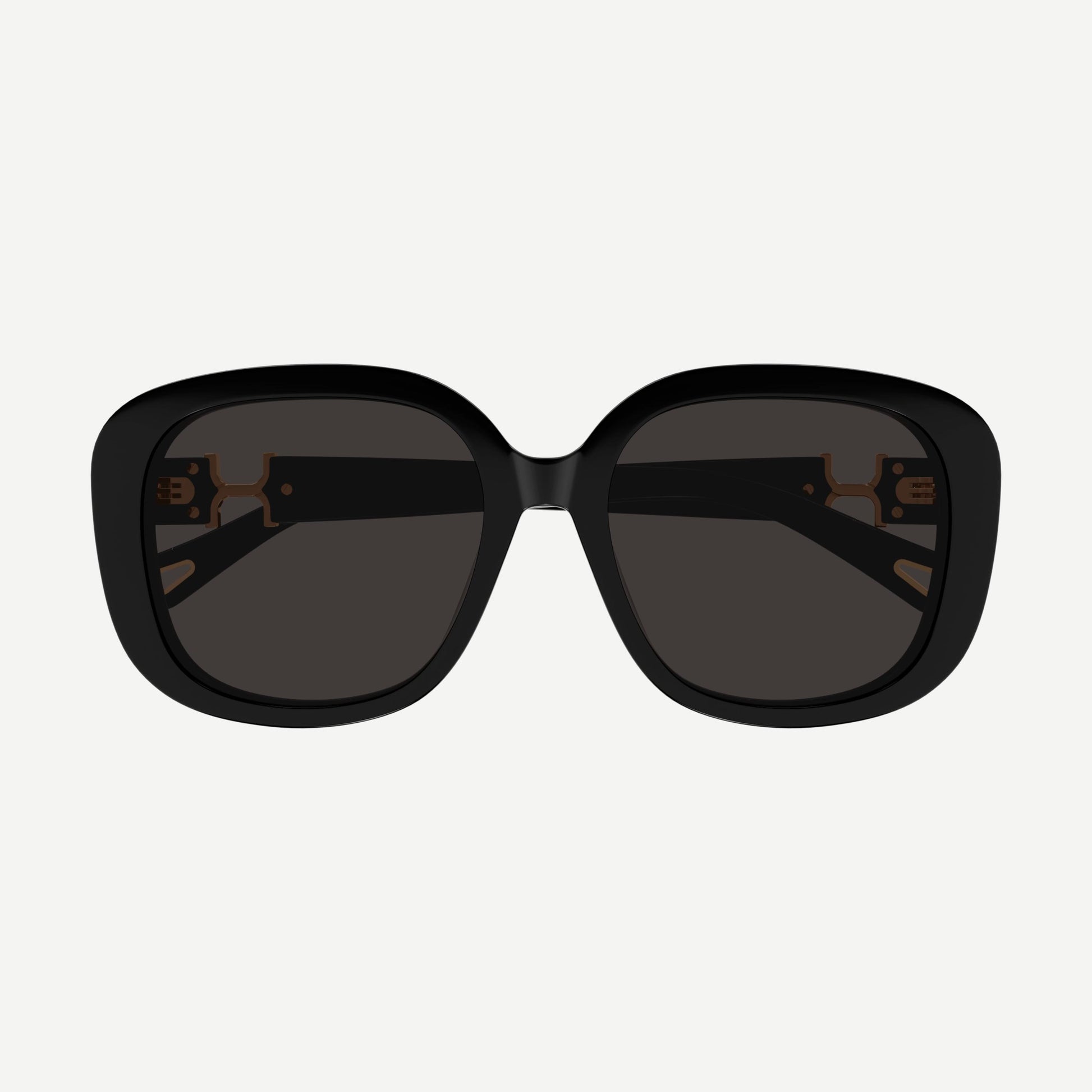 Extremely feminine acetate shape enriched with the Iconic Marcie logo, named after the iconic bag and now broadly used on other product categories. The Marcie element launched in SS24 on the hinge on bolder styles, moves in SS25 to the centre of the temple, creating a game of movement between solid and empty forms.