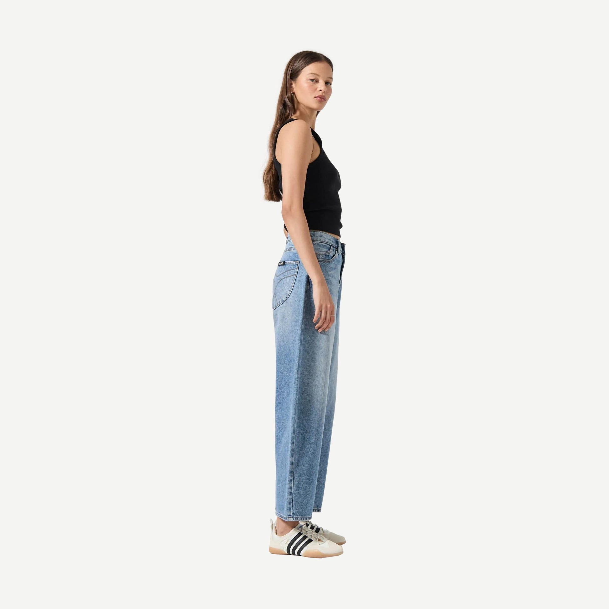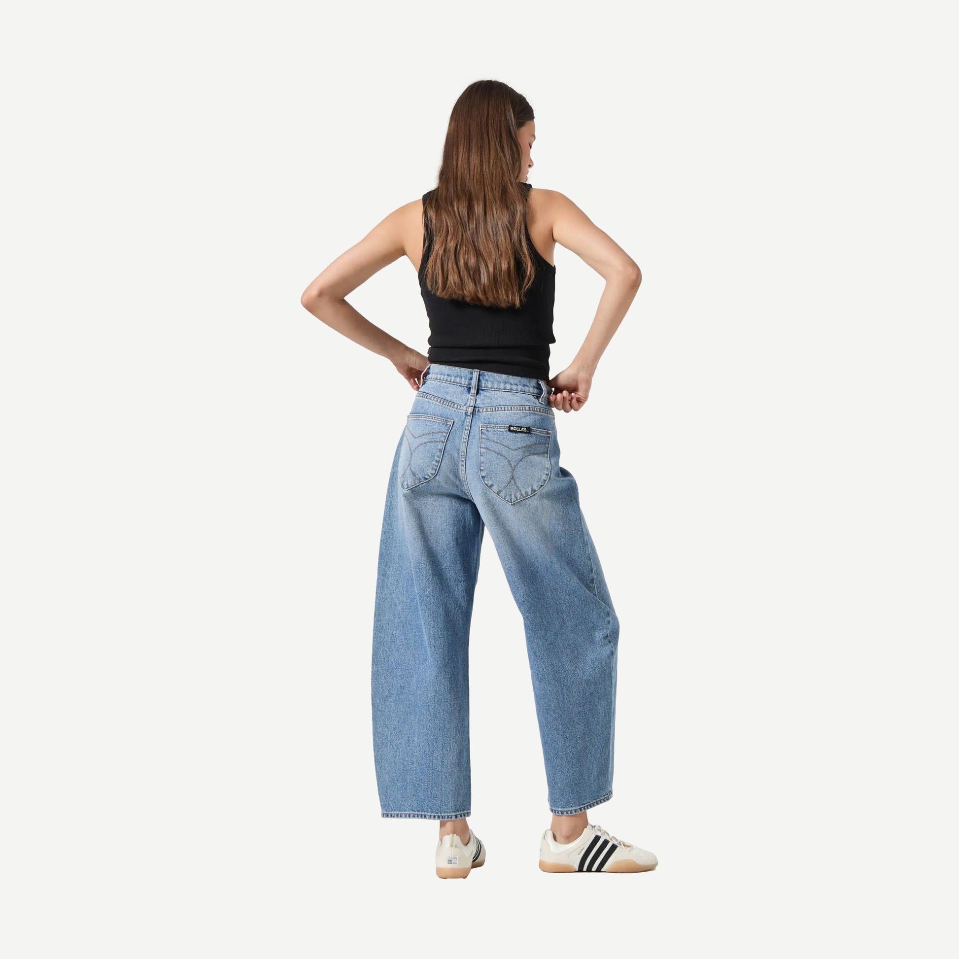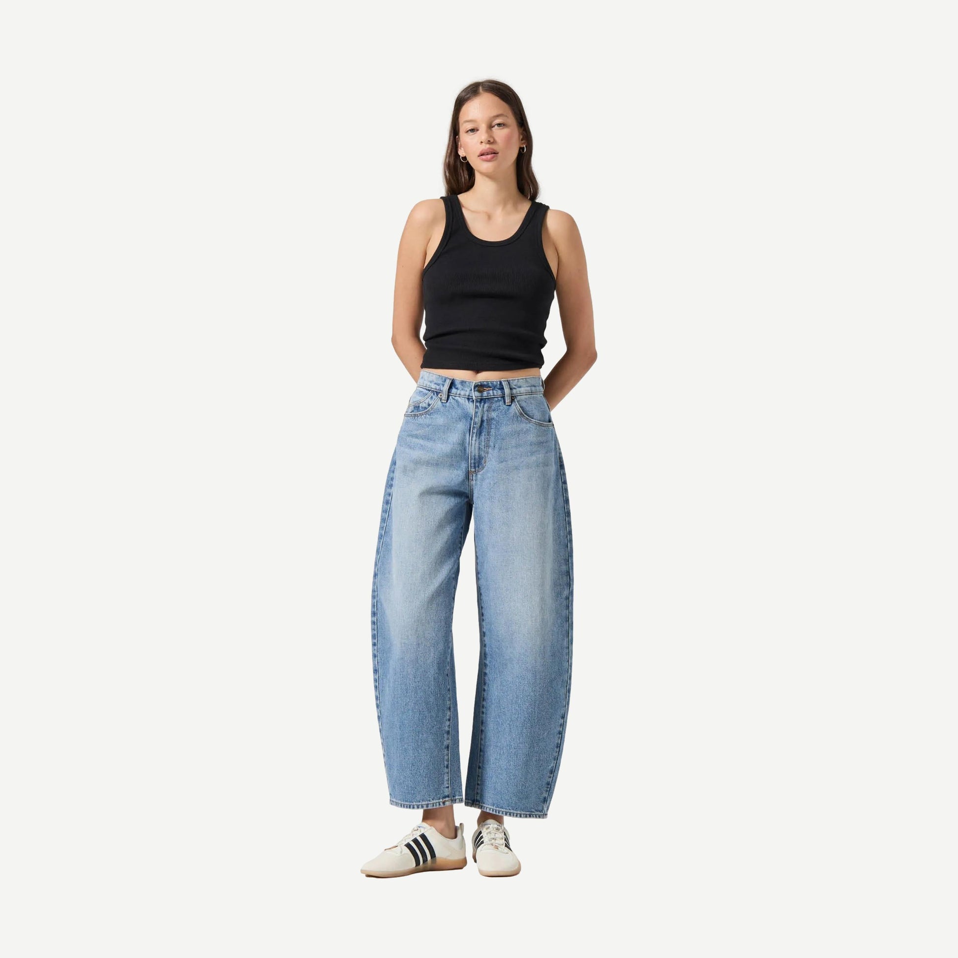 Gigi Barrel is a super high rise jean that holds through the seat, balancing the sculptural leg silhouette.
