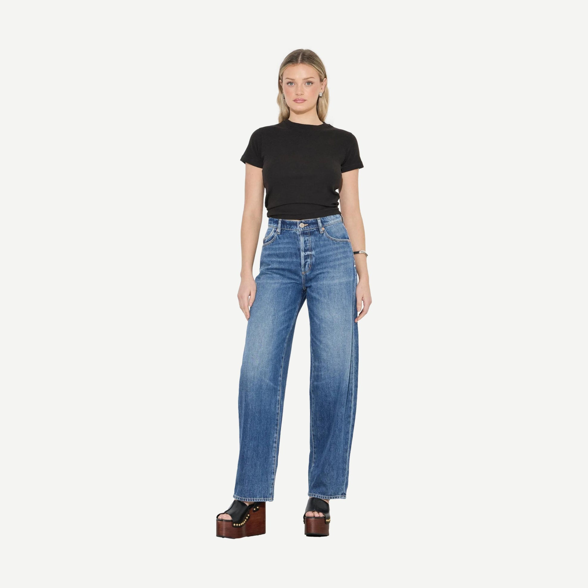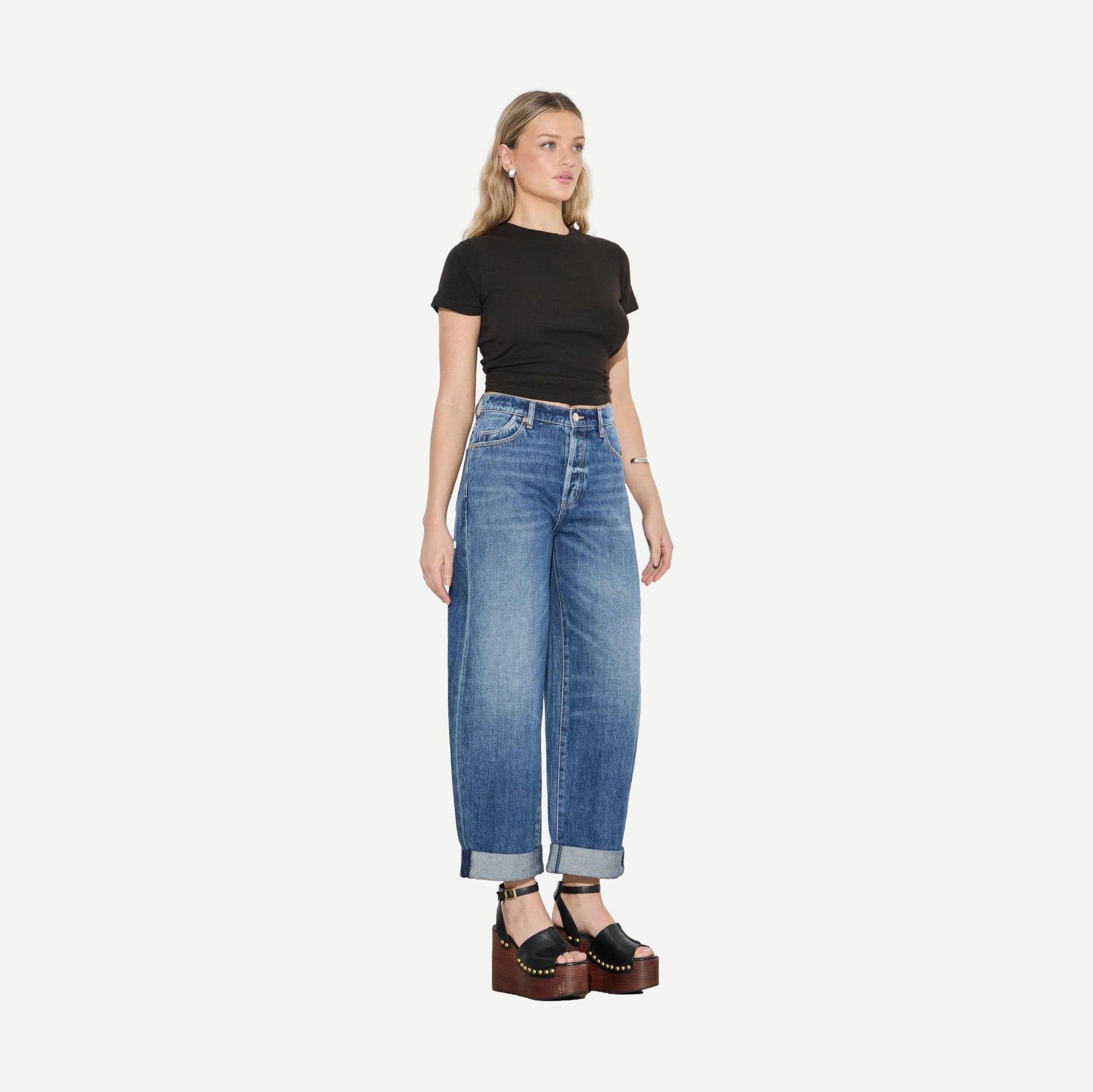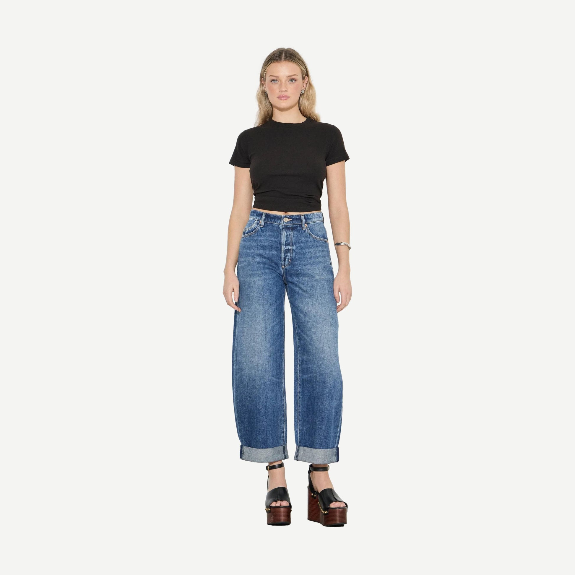 Gigi Barrel is a super high rise jean that holds through the seat, balancing the sculptural leg silhouette. Wear your hem rolled down or up for versatile styling.