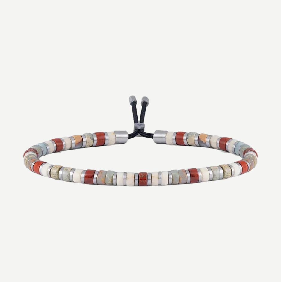 The Brontide 4mm Adjustable is for those who like a clean, subtle look. This adjustable bracelet is perfect to combine with other bracelets, but can also be worn alone. The bracelet features gemstones that all carry a valuable meaning. The names Fuji, Nagoya, Okinawa, Asaka, Nara, Tiger Eye and Takayama are based on the colors that characterize these cities.