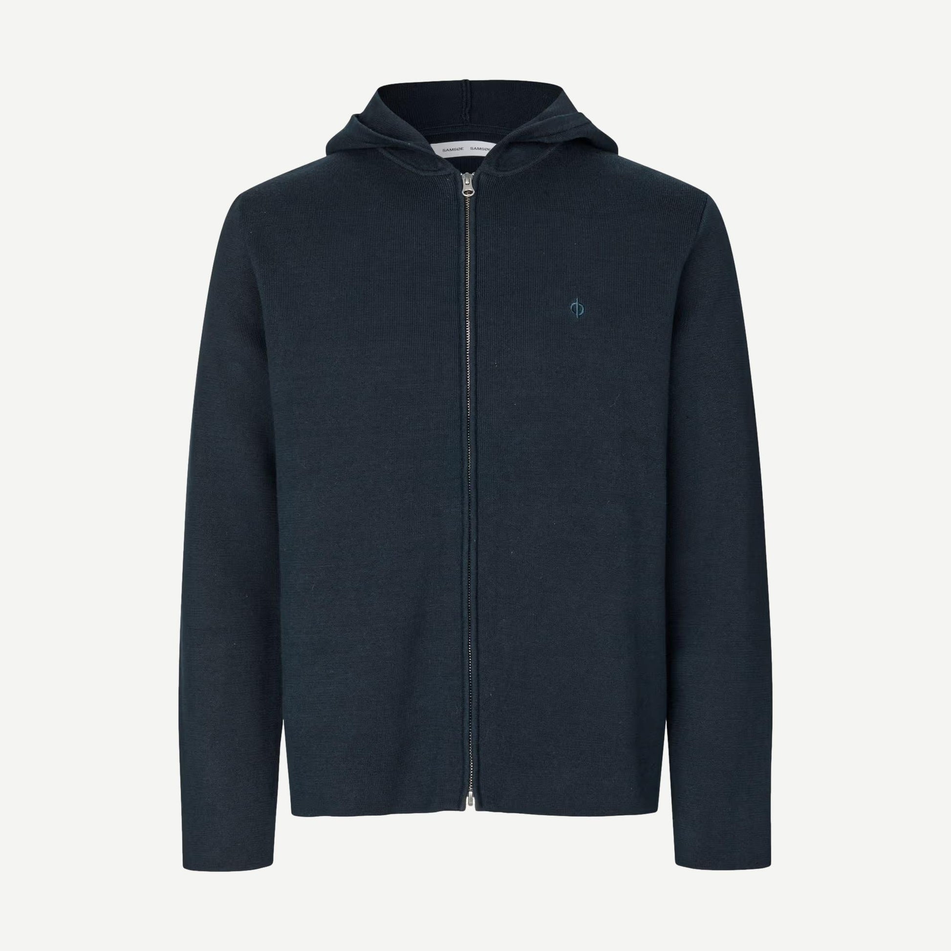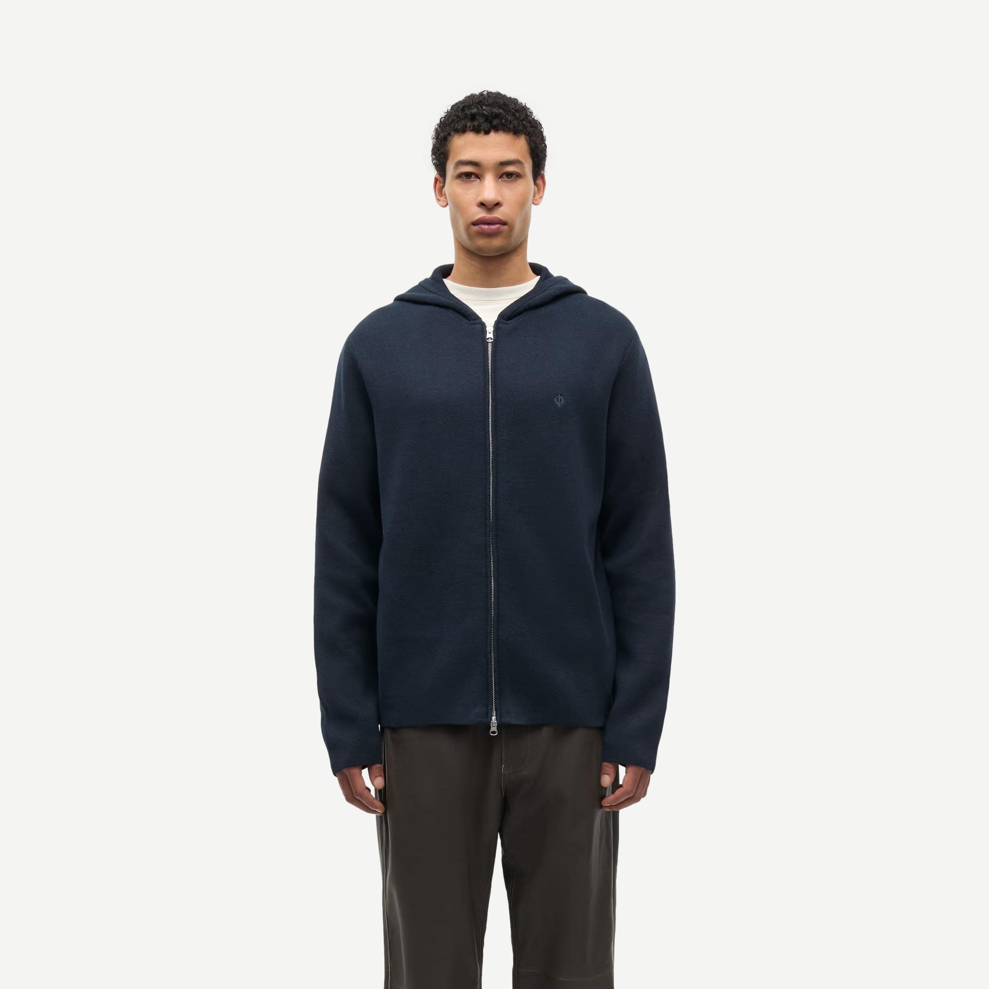 Knitted hoodie with a regular fit. Two-way zipper closure on the front. Main material made from a blend including organic cotton.
