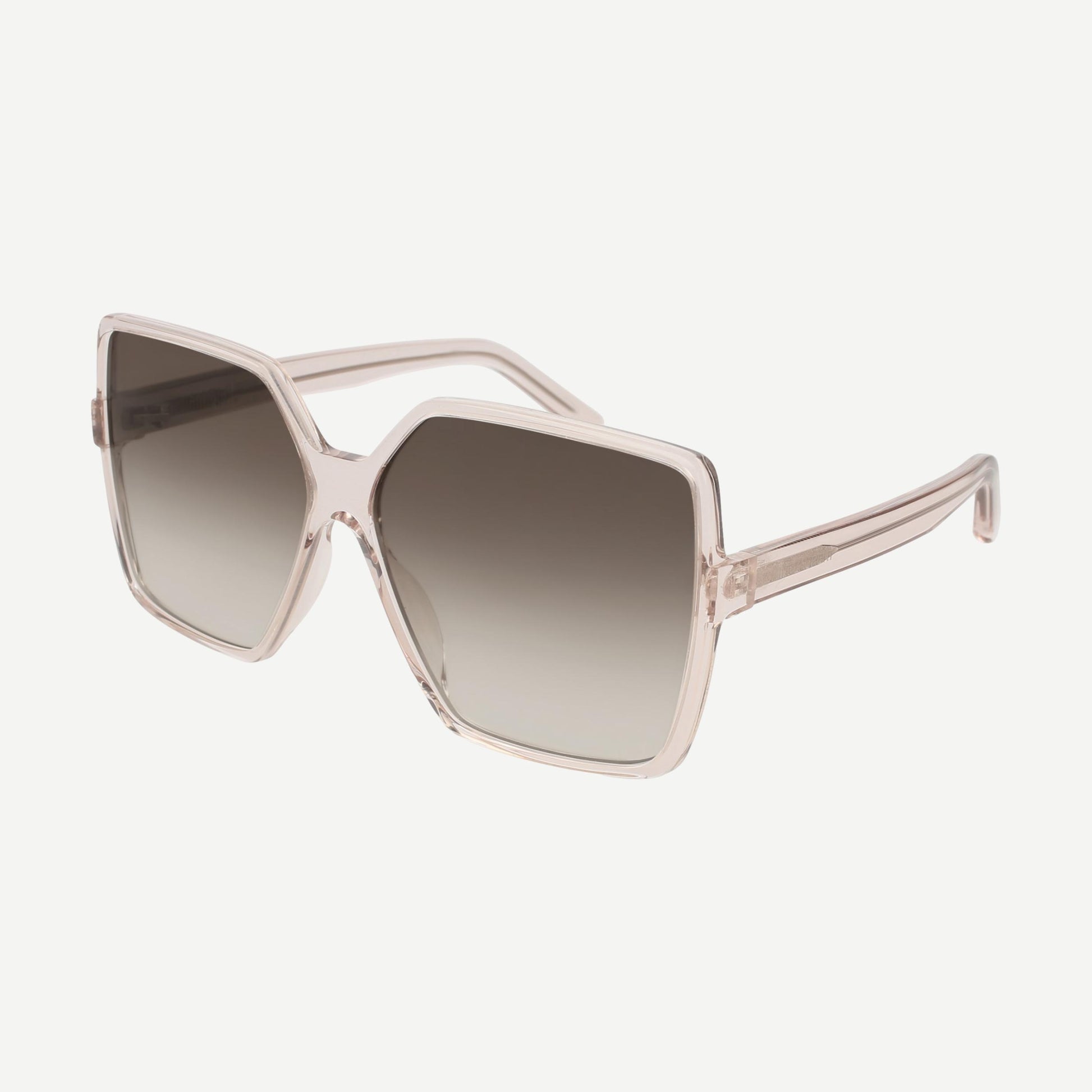 The evolution of the style SL 183 betty launched in ss17. An oversize feminine squared acetate shape with thin volumes and sharp angles. Saint Laurent signature is laser engraved on both temples.