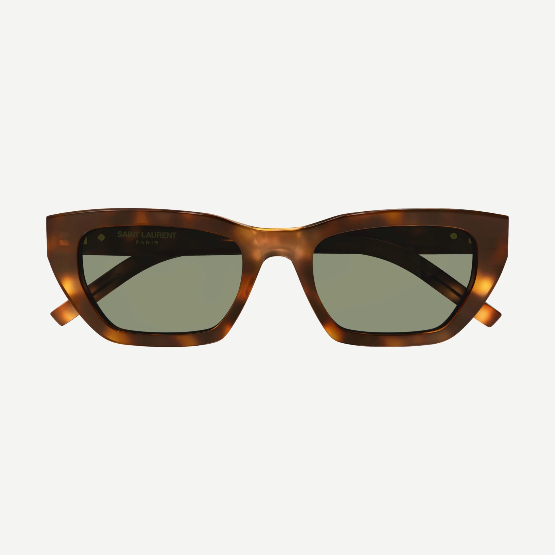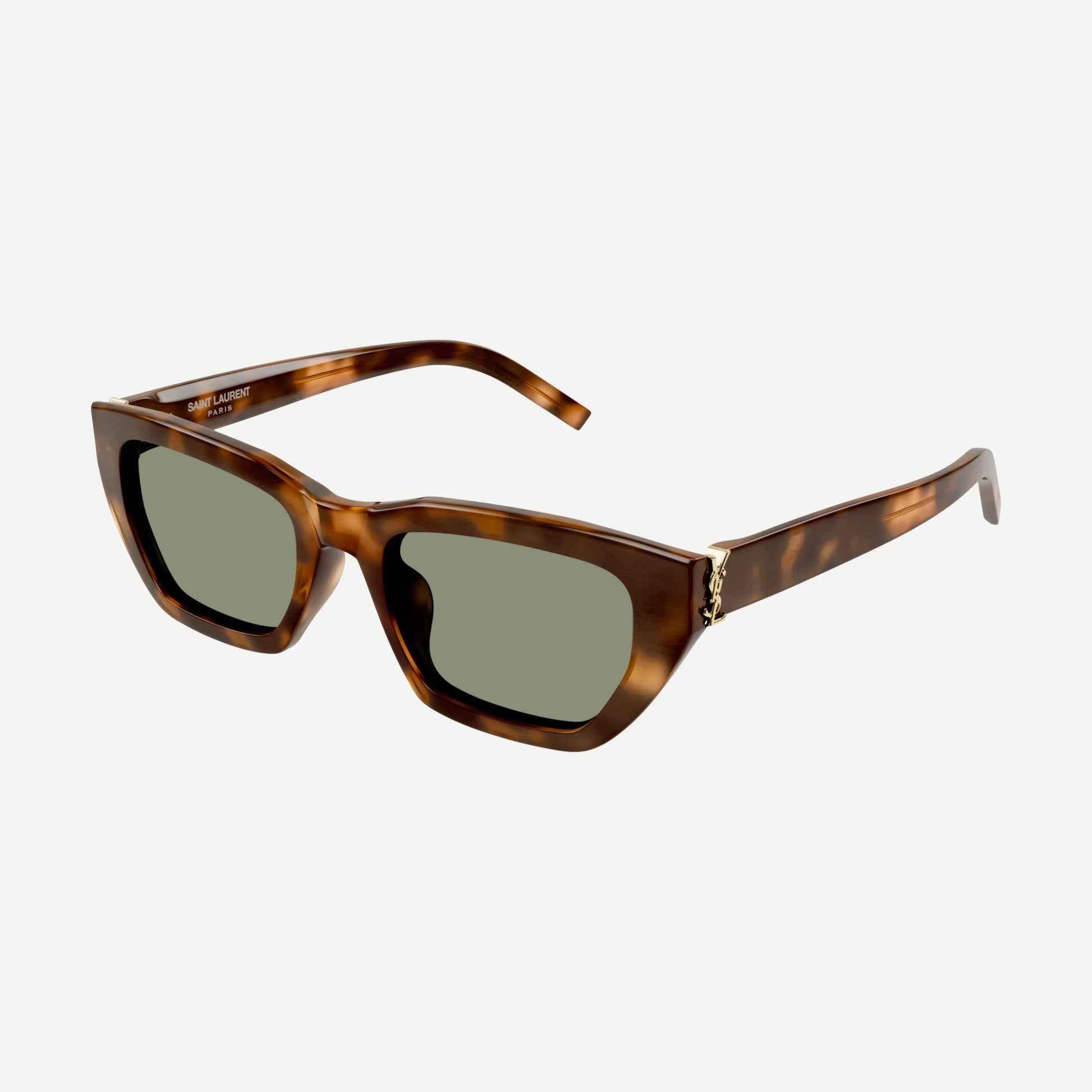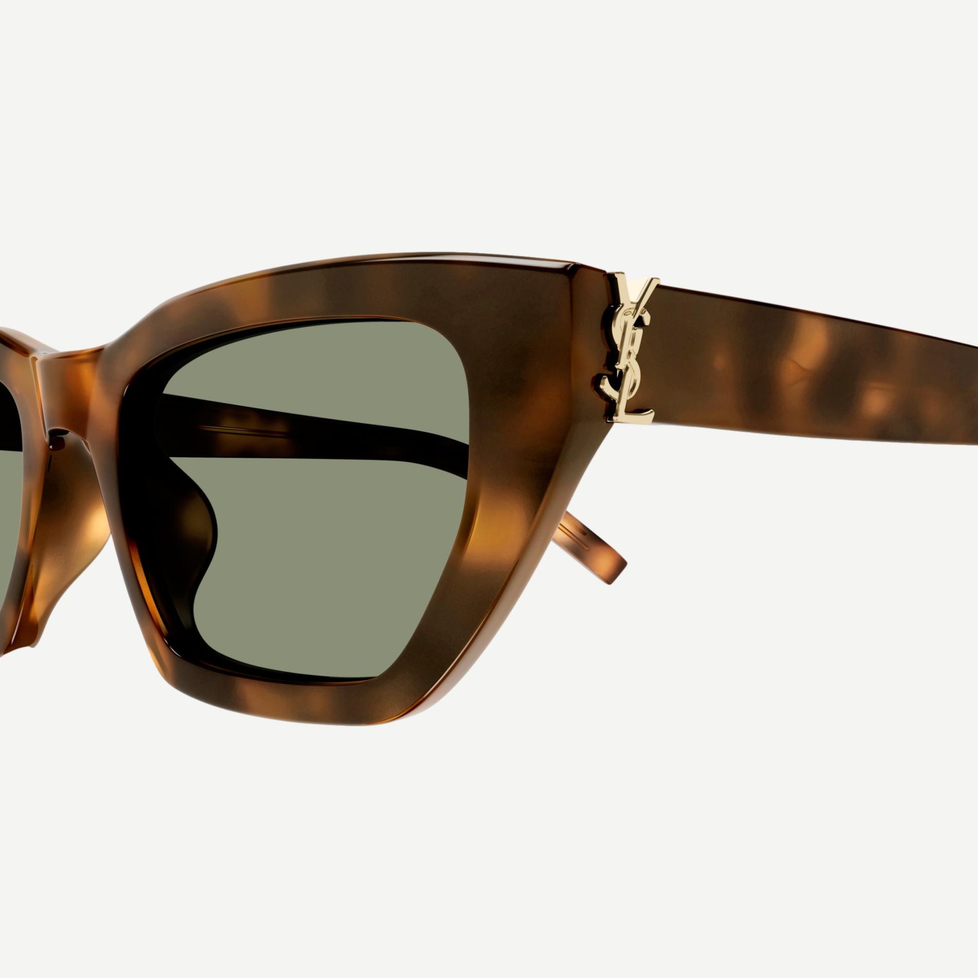 A cat-eye style that recalls the iconic and distinctive shapes of the Maison. The style is characterized by the iconic YSL monogram logo on the hinge as precious detail.
