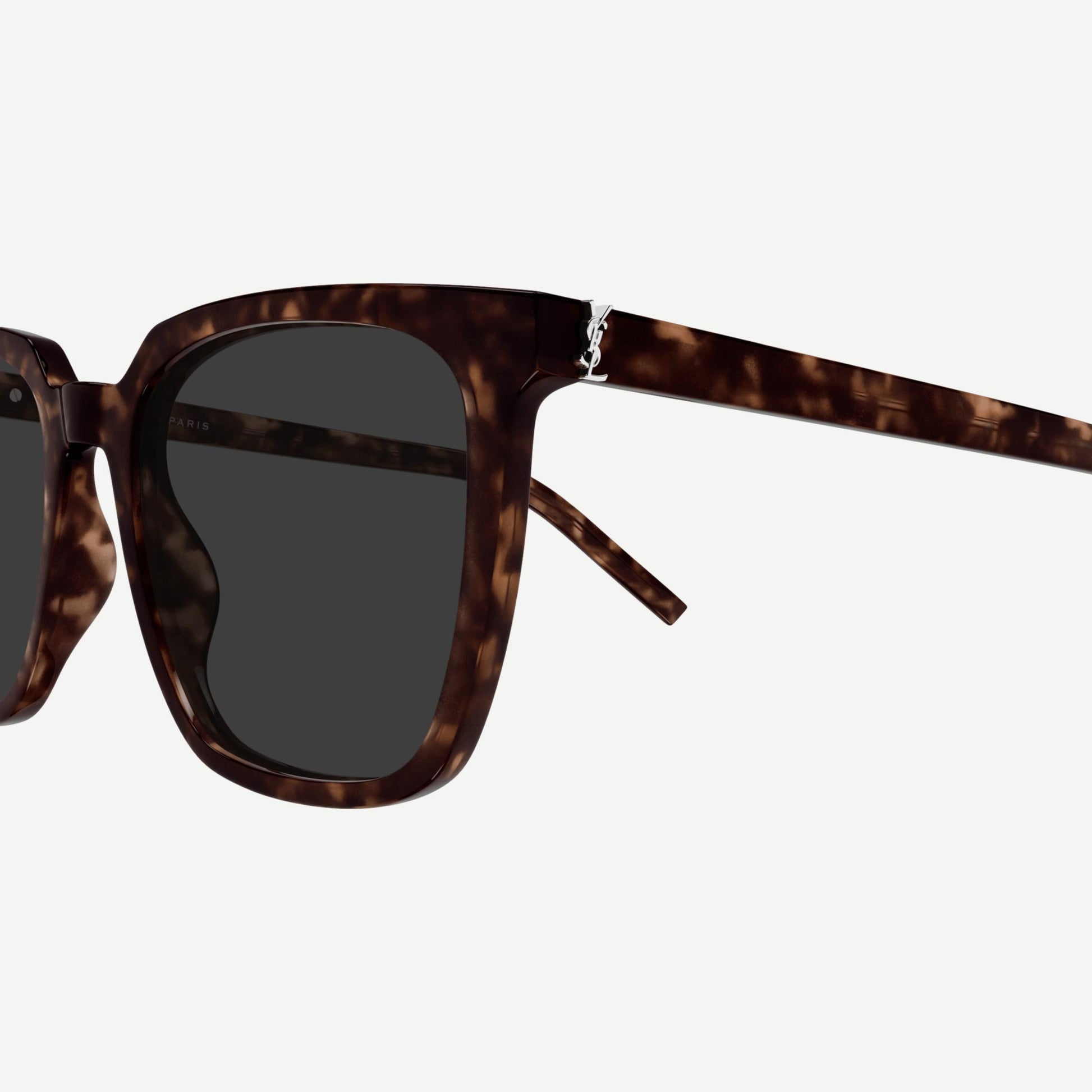 Monogram hinge made of thin sections on front and temples for maximum lightness and comfort. New sun style oversized square shape, for the first introduced in the thin monogram hinge acetate family for an easy to wear and refined look.